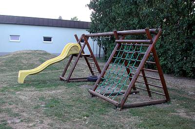 ![]() (2) Klettergerüst mit Schaukel und Rutsche |