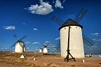 Don Quijote ist die Hauptfigur aus dem gleichnamigen Roman des spanischen Schriftstellers Miguel de Cervantes aus dem 17. Jahrhundert. Eine der bekanntesten Geschichten ist dabei der Kampf gegen Windmühlen. Als wir heute durch La Mancha fuhren, konnten wir ein wenig hineinfühlen, denn überall sieht man Windmühlen. Im Ort Campo de Criptana gibt es sogar zehn Mühlen (Molinos de Viento). Angeblich waren es diese, die Cervantes zu seiner Geschichte inspirierte. Diesen Platz schauten auch wir uns an und waren begeistert von der Stimmung.