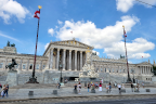 Das Parlament bietet kostenlose Führungen durch das Gebäude an. Wir nahmen dieses Angebot gerne an und nahmen an einem sehr interessanten Rundgang durch die ehrwürdigen, mittlerweile jedoch sehr modern eingerichteten Räumlichkeiten der Volksvertretung teil. Wir sahen die Säulenhalle sowie die drei Sitzungssäle und genossen zum Abschluss die Aussicht auf Wien vom Dach aus.