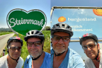 Glücklicherweise beruhigte sich das Wetter bis zum Morgen. Somit konnten wir wie gewohnt bei Sonnenschein in den letzten Tag starten. Aber Erich unterschätzte die Folgen des nächtlichen Unwetters und rutschte prompt auf einer dicken Schlammschicht mit dem Rad aus. Die Verletzungen hielten sich sehr in Grenzen, aber der Schlamm war danach überall. Unsere erste Pause legten wir schließlich in Bad Tatzmannsdorf ein.