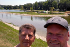 Die sechste Etappe sollte die heißeste werden. Schon bei der Abfahrt war es sehr warm. Zunächst pendelten wir zwischen der Steiermark und dem Burgenland und erreichten mit Wolfau den Bezirk Oberwart. Die Lafnitz begleitete uns den halben Tag bis nach Neustift. Als der Radweg uns direkt an einem Badesee vorbeiführte, beschlossen wir, spontan einen Sprung ins kühle Nass zu wagen.