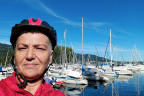 Als wir den Bahnhof verließen, fanden wir uns inmitten einer Menschenmenge wieder. Wir waren direkt am Hafen. Nach einem Blick auf den berühmten Leuchtturm und den Mangturm schwangen wir uns auf unsere Räder und fuhren Richtung Bregenz. Wir ließen die Insel hinter uns und erreichten nach sechs Kilometern und der Überquerung der Leiblach Österreich.