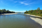 In Vorarlberg fuhren wir weiter entlang des Sees über Lochau in die Landeshauptstadt Bregenz. Die Stadt war uns bereits aus einigen Urlauben bekannt. Vorbei an der Seebühne durchquerten wir die Stadt auf dem Strandweg. Kurz vor der Mündung in den Bodensee passierten wir die Bregenzer Ache und den Alpenrhein. Die Gegend rund um den Rhein kannten wir auch bereits von einem früheren Urlaub.