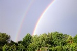 Nur einen Tag vorm Geburtstag von Erich gab es von unserem Garten aus einen wunderschönen Regenbogen zu sehen. Wir versuchten diese atemberaubende Szenerie auf Fotos festzuhalten. Was dabei raus gekommen ist, seht ihr rechts.