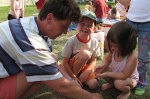 Nach dem großen Erfolg im Vorjahr veranstalteten die Kinderfreunde Antau auch heuer wieder ein Vatertagsbasteln am Spielplatz Wulkablick. Trotz des recht heißen Wetters nahmen 23 Kinder und eine Jugendliche beim Basteln teil, darunter auch Jürgen und Benni sowie Gisela. Es wurden mit großer Begeisterung tolle Sonnenthermometer und Vatertagskarten von den Kindern gebastelt.