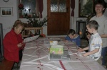 Mit rund 30 Kindern und deren Eltern begannen wir schließlich noch während des Rummels mit unserem Programm, welches aus einem Mondlauf (die Kinder laufen eine bestimmte - diesmal wegen des Wetters sehr kurze - Stecke und wir berechnen aus der gemessenen Zeit die Dauer, die die Kinder mit der gelaufenen Geschwindigkeit zum Mond und zu anderen Himmelskörpern benötigen würden) und aus einer Mal- und Bastelstation bestand. Neben dem Malen von astronomischen Motiven konnten die Kinder auch echte drehbare Sternkarten und Papierraketen basteln. Die Betreuung des Basteltisches lag bei Gisela und Franzi.