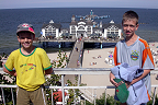 Der nördliche Strand von Sellin liegt unterhalb des Hochufers, man muss also einige Höhenmeter hinunter steigen (und beim Rückweg natürlich wieder hinauf) um zur Ostsee zu gelangen. Der Strand ist jedoch sehr sauber und fast zur Gänze aus Sand. Das Wasser war mit 20°C erfrischend, das konnte unsere Männer jedoch nicht vom Bad abhalten. Wir waren zweimal recht lange in den Fluten. Gisela reichte hingegen schon ein Zehenbad.