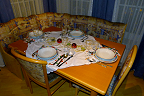 Nach den Geschenken folgte das wie jedes Jahr von Gisela ausgezeichnet zubereitete Weihnachtsmenü. Auch der Tisch war entsprechend feierlich gedeckt. Noch bis nach Mitternacht waren wir mit unseren Geschenken beschäftigt und verfolgten auch immer wieder den Weihnachtsmann im Internet.